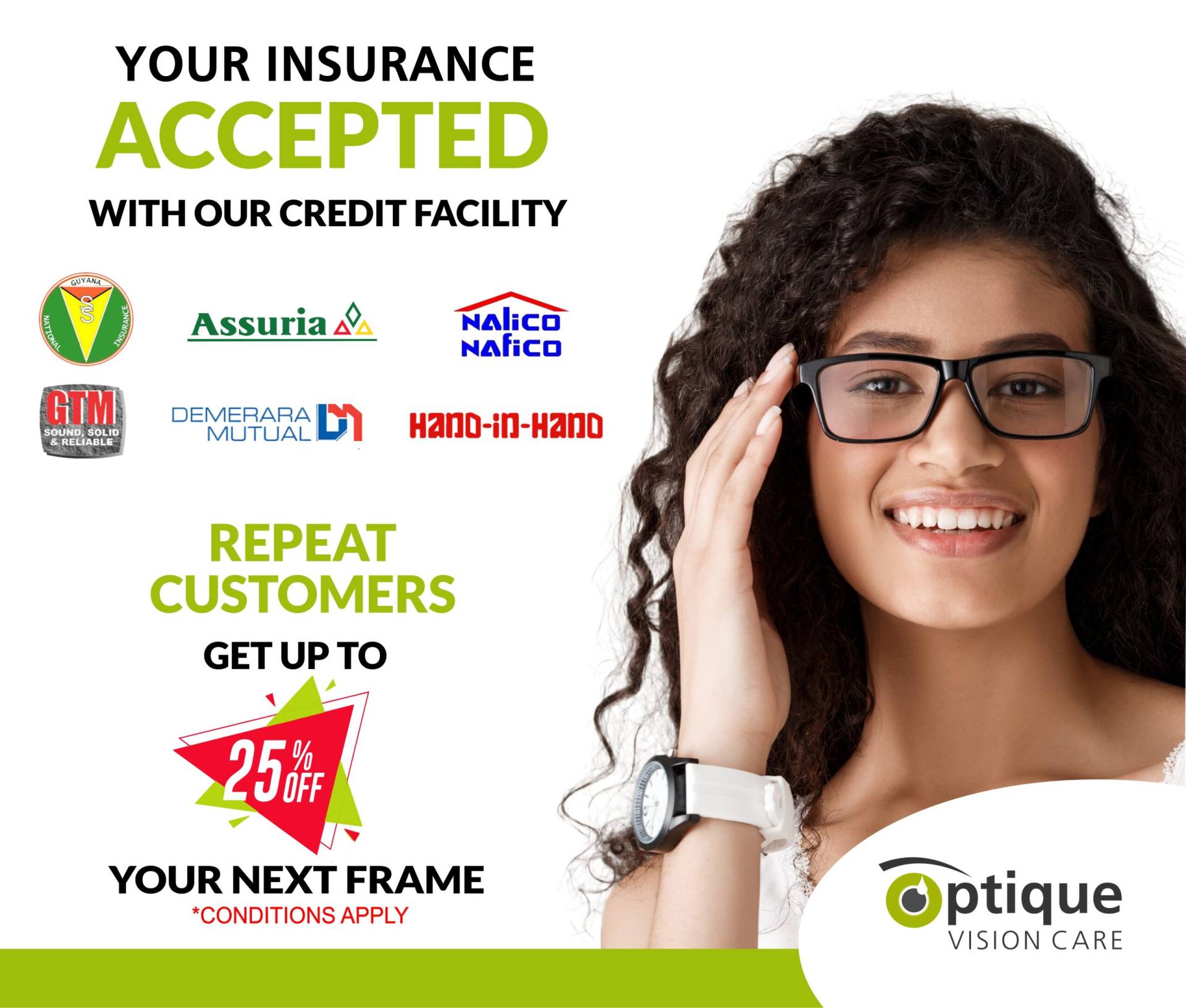 Previous customers of Optique Vision Care, can received up to 25% off their next frame. Percentage of discount depends on the cost of the selected frame.
