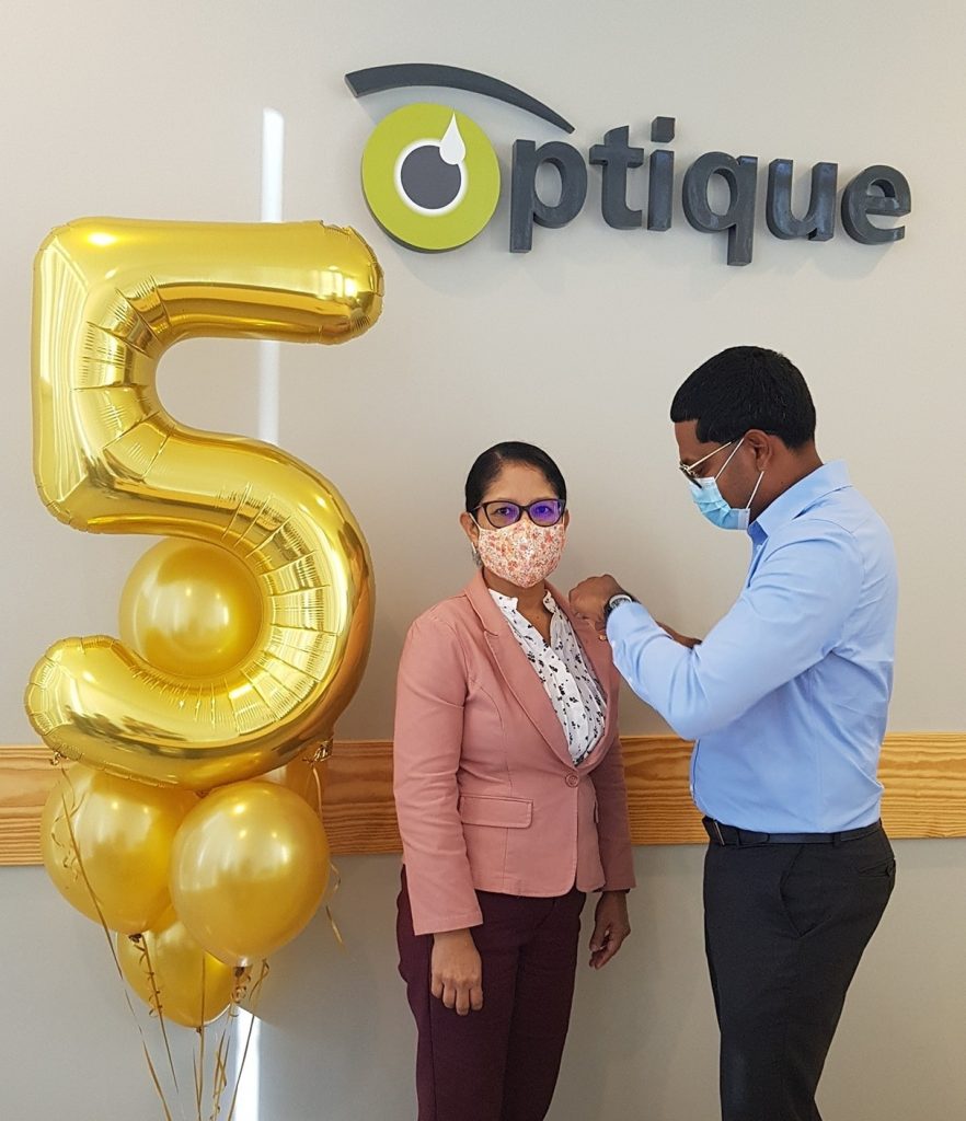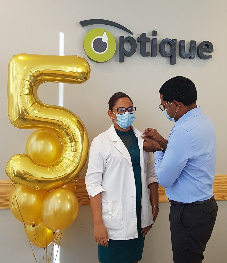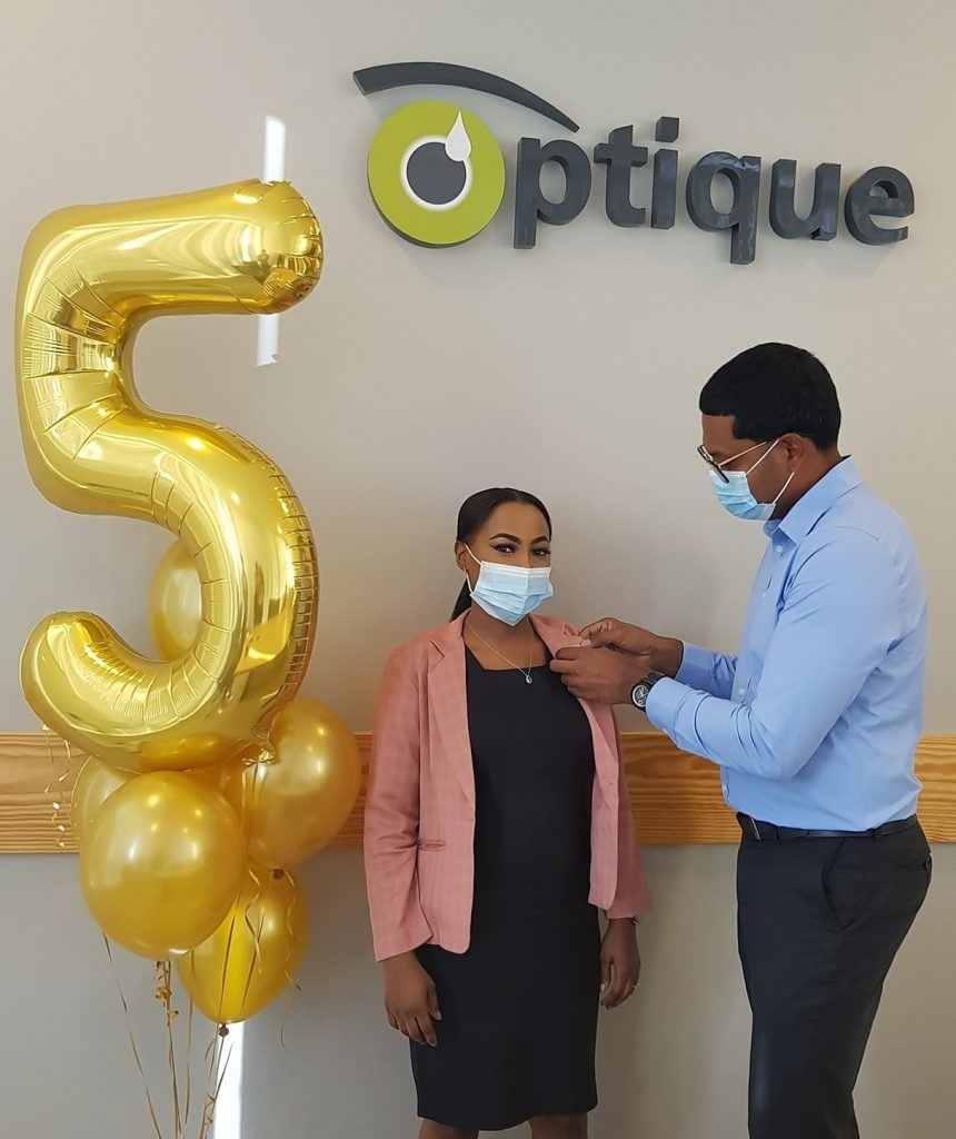 On Wednesday 17th February 2021, we honoured five of our employees who have served at #OptiqueVisionCare for 5+ years namely; Hardat Singh, SharonJeffrey-Elliott, Keshi Pyle, Delicia Liverpool, and Claudia Gravesande.